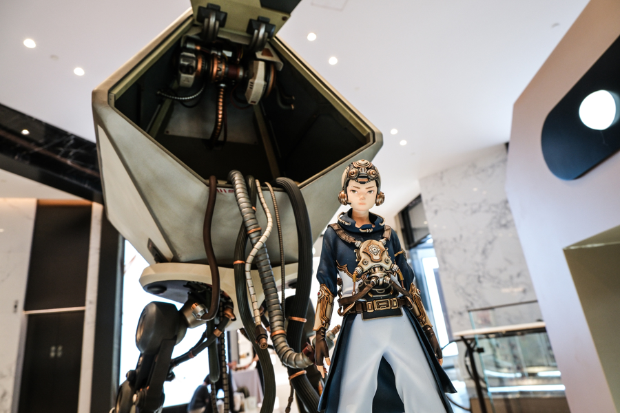本次共展出六个性格鲜明的角色设定雕塑以及电影级场景模型,以艺术将科幻史诗从“阅读”变成“亲历”,为观众打开走进刘慈欣科幻宇宙的实体入口,完成一场震撼的“次元穿越”。这场展览不仅是陈嫣冉用艺术重构的赛博世界,更是一次新锐艺术语言与刘慈欣科幻经典的跨次元对话。